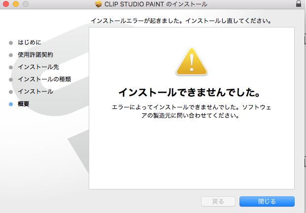 「CLIP STUDIOが予期しない理由で終了しました」Mac OX違い |