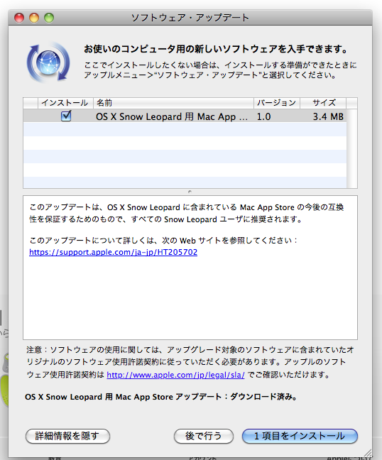 ※Safariが使用できる最新版にアップデートしていない場合は、ソフトウェア