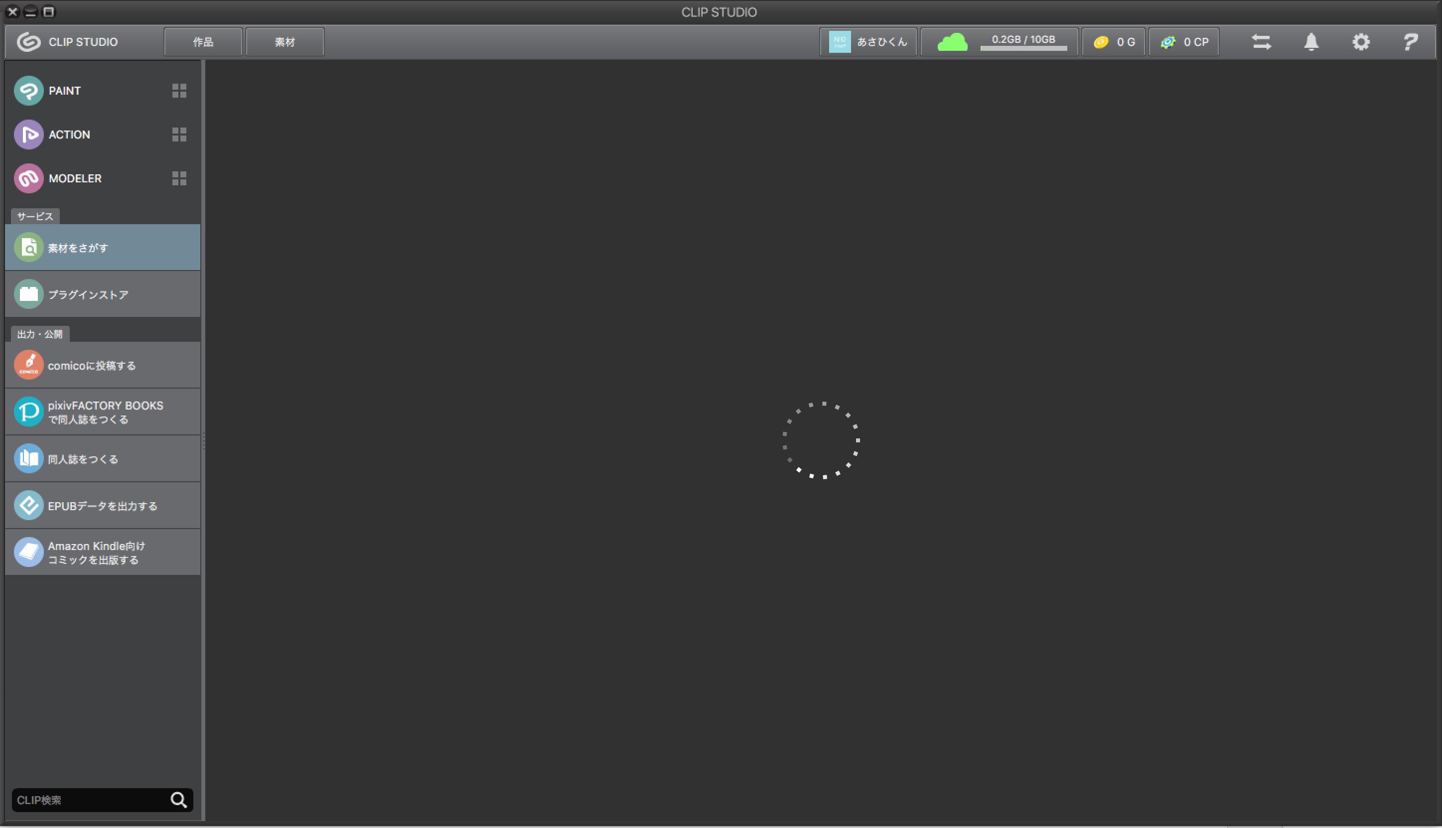 ・CLIP STUDIO 1.6.3で左側の素材をさがすをクリックしていただいた