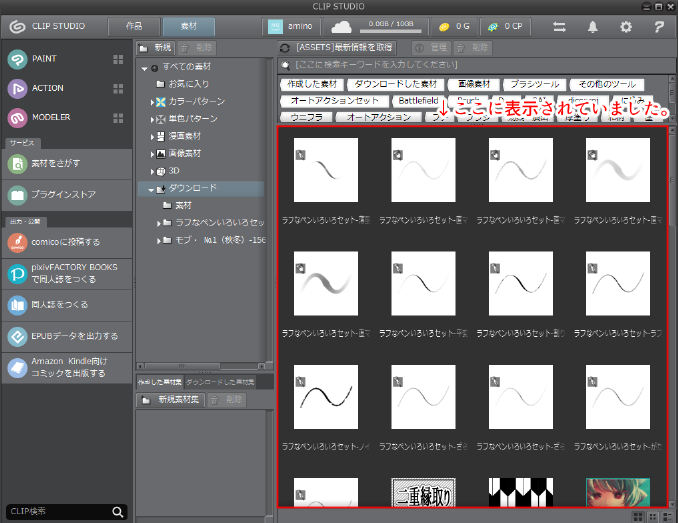 (2)CLIP STUDIO ASSETS上では存在が確認できるが、