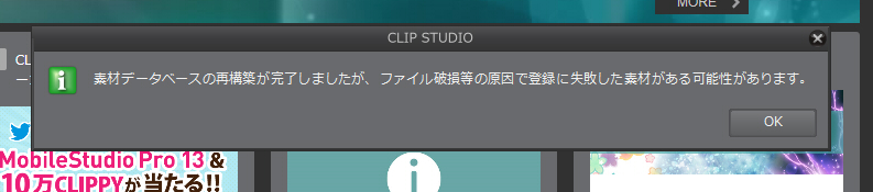 ![]() CLIP STUDIOを起動すると、上の毎回スクショのような表示が出ます。以前(1.6.3アップデート前?)は出なかったような気がするのですが。 一度終了すれば一旦閉じて開いても表示されませんが、時間がたつと(数時間くらい?)、また開いたときに出ます。 ダウンロード中にCLIP STUDIOやASSETSを使ったり、素材をダウンロードするのは怖いので、終わるまでいちいち待っています。待たなくても大丈夫なんですかね・・・?; 毎度毎度出るのがいい加減うっとおしくなってきました(笑) なんとか出来ませんでしょうか。 ------------------------------------------------------------ ■バージョン: ※右上の[?]アイコンをクリック後に[バージョン情報]で確認できます。 ■OS Windows XP( ) Windows Vista( ) Windows 7 ( ○ ) Windows 8( ) Windows 8.1( ) Windows 10( ) MacOS X 10.5( ) MacOS X 10.6( ) MacOS X 10.7( ) MacOS X 10.8( ) MacOS X 10.9( ) MacOS X 10.10( ) MacOS X 10.11( ) mac OS 10.12( ) その他( ) ------------------------------------------------------------ |