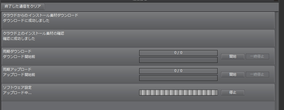 [クラウドインストール素材の完全同期]を実行し、メッセージが表示されなくなるか