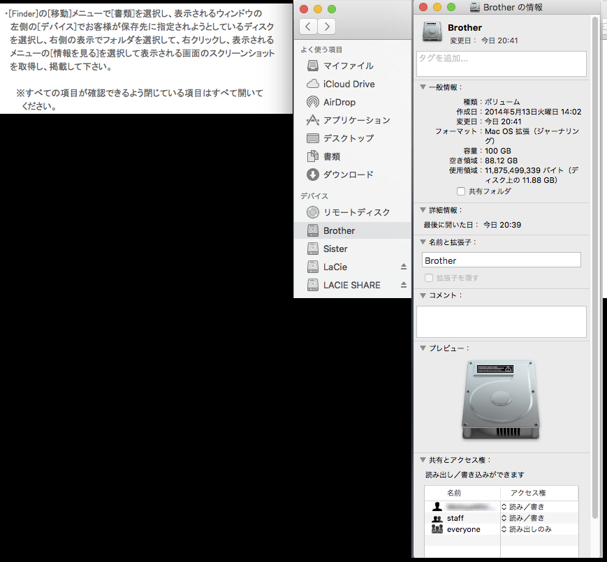 保存先ディスクの情報のスクリーンショット