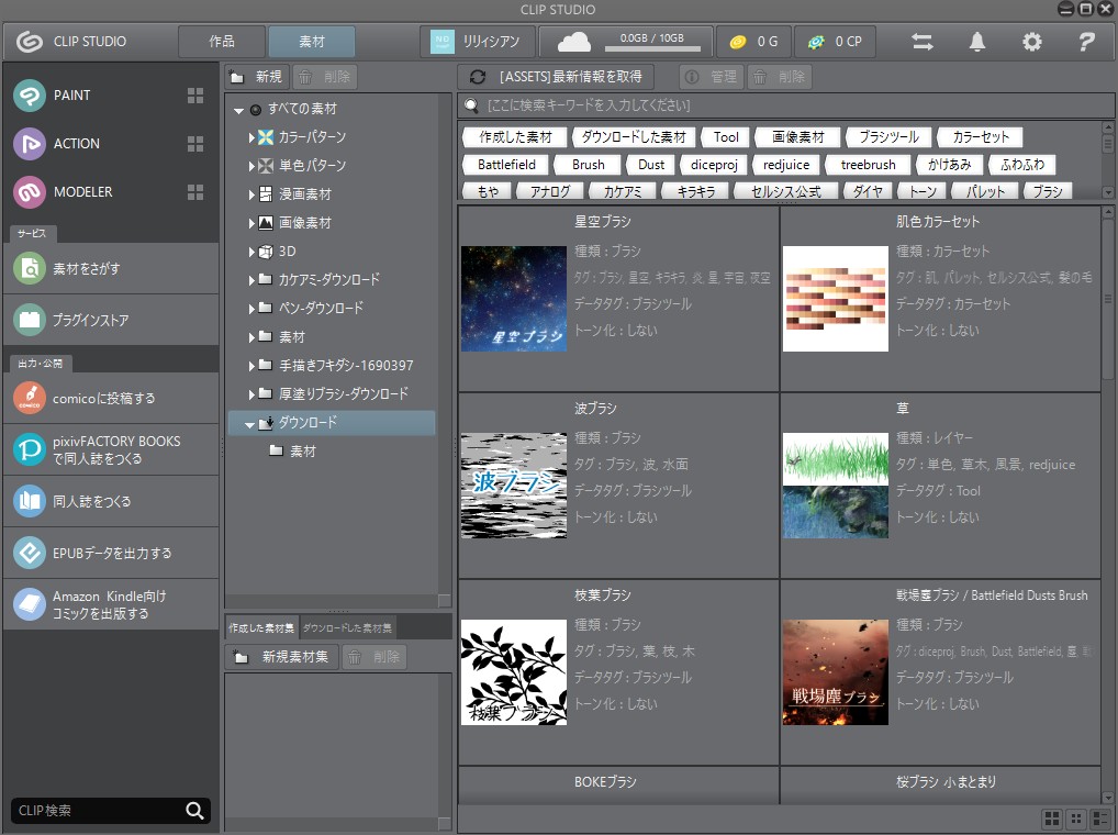 CLIP STUDIO ASSETSで[素材集]をダウンロードすると、[ダウンロード]フォルダの中に
