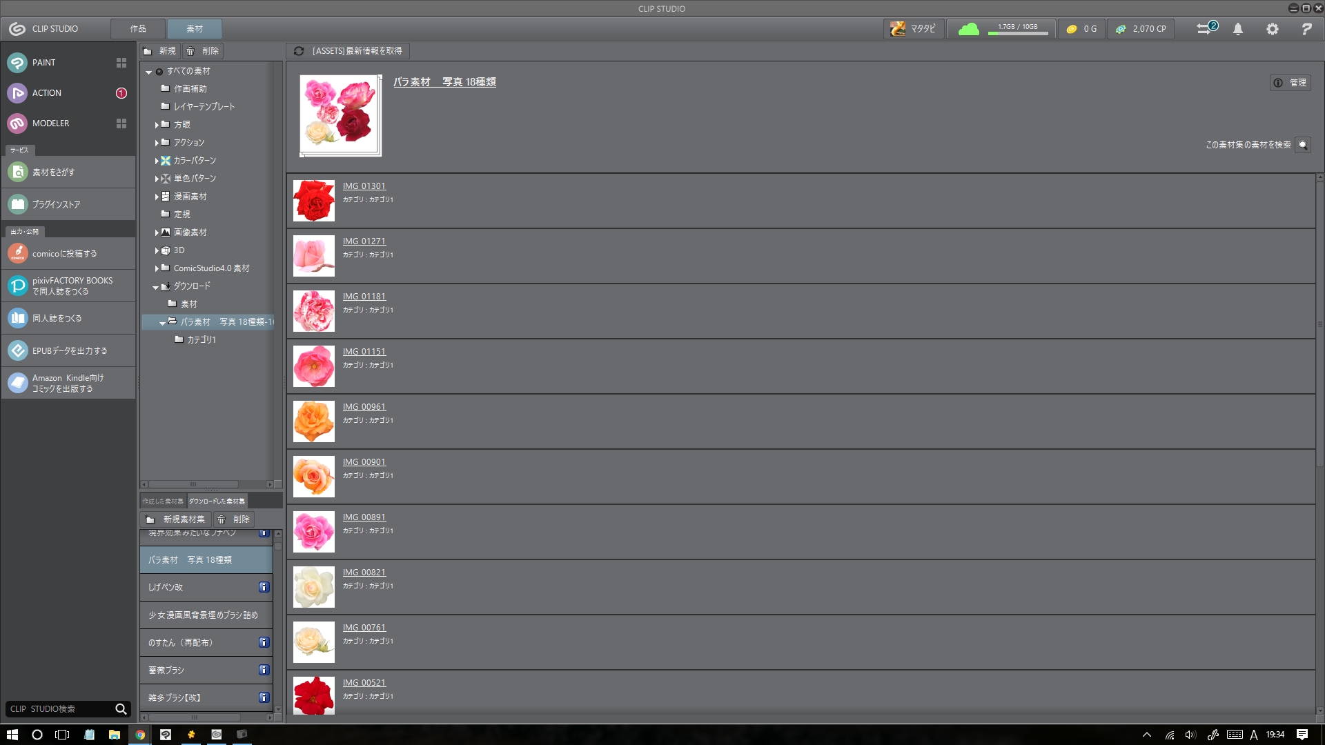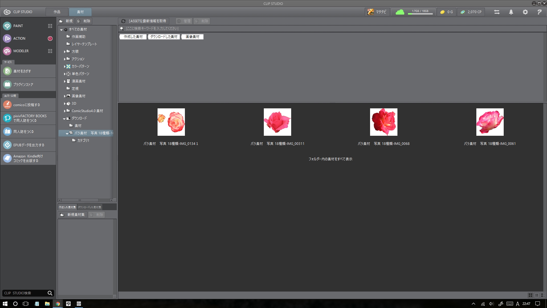 2.以下の画像の通り、[ダウンロードした素材集]にて[バラ素材 写真 18種類]