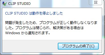 「ComicStudio 4.0素材のコンバート」で動作の停止(プログラムの終了)となった・・・ |
