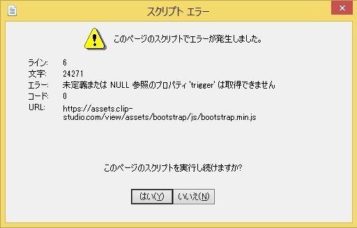 他の質問等を見てやったこと等 ・IEのキャッシュクリア ・IEの詳細設定を初期値に戻す ・ウイルスバスタークラウドの除外設定 ------------------------------------------------------------ ■バージョン: Version 1.6.7 システムが64bitなのですがCLIP STUDIOには32bitと表示されています。 これも何か関係あるのでしょうか? ※CLIP STUDIO Paintには64bitと表記されていました。