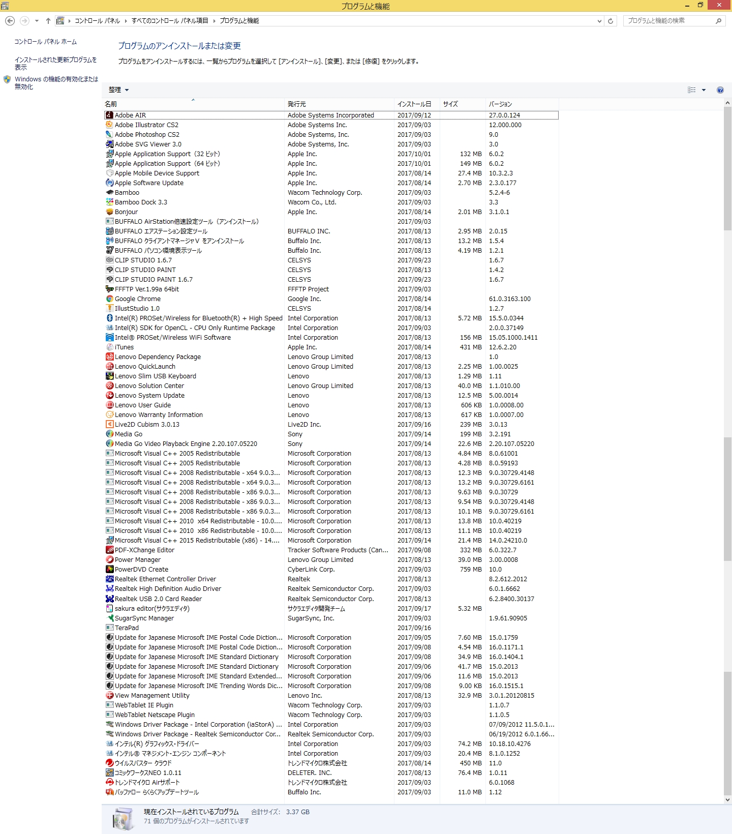 なお、CLIP STUDIOは32bitのアプリケーションですので、表示については