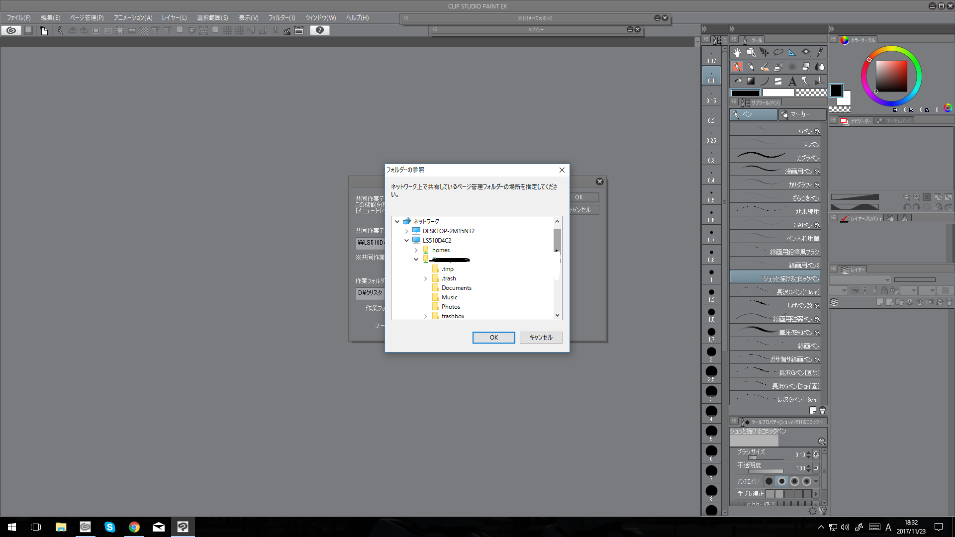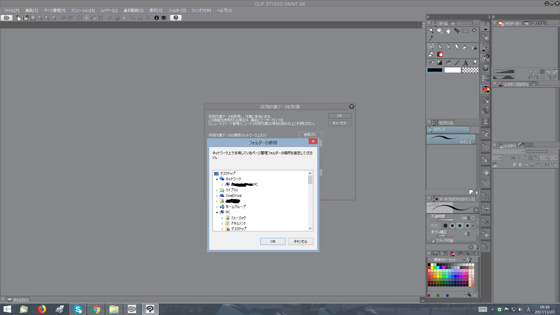 今回知りたいのはPC1のクリスタではNASを認識し、共同作業データをそこに