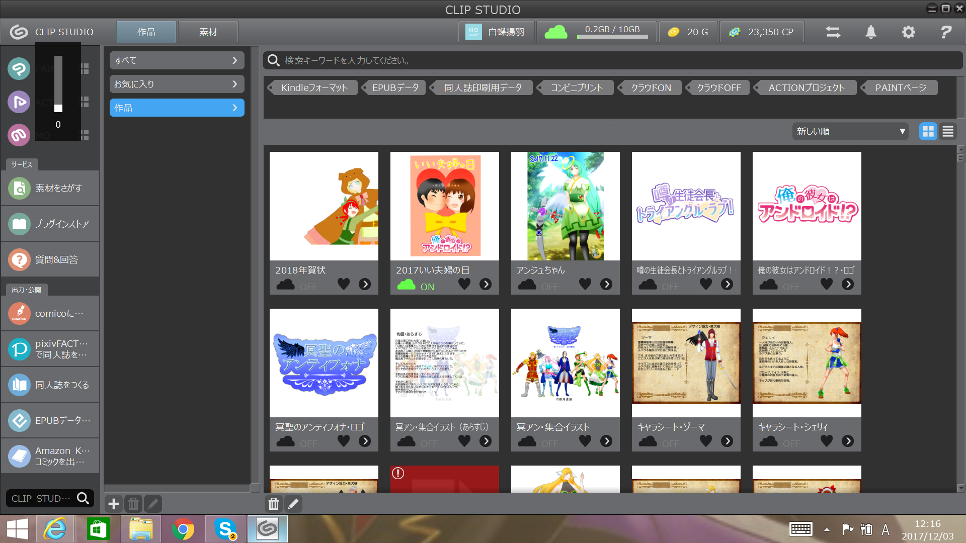 ・CLIP STUDIOでは作品欄に表示されるとの事ですが、その画面の