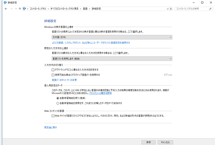 4コントロールパネル→言語→詳細 のスクリーンショット