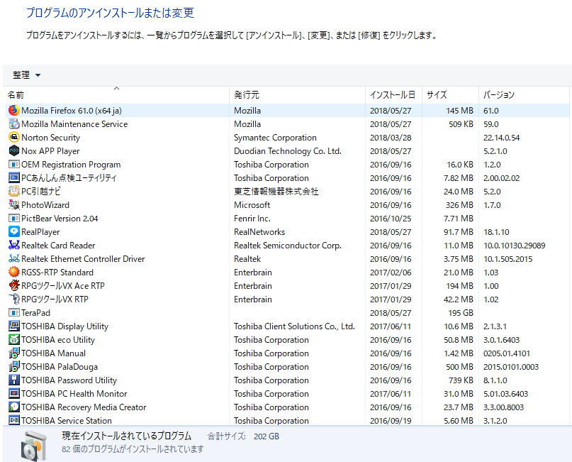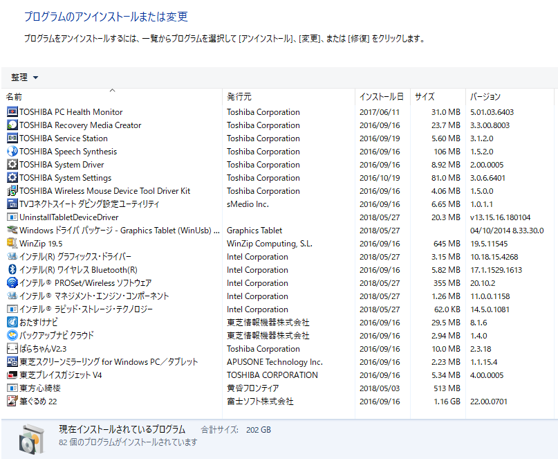 (プログラムと機能)]を選択して表示される画面のすべての項目が