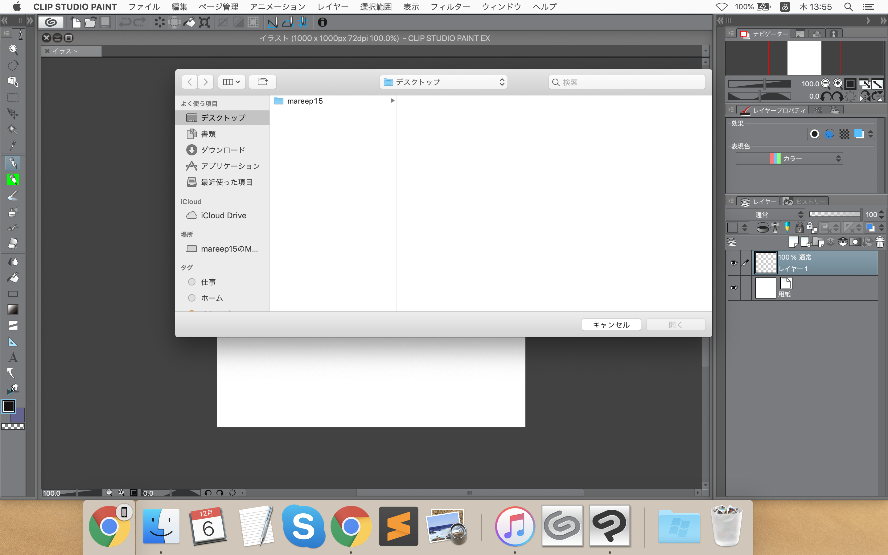 「開く」ボタンを押すとすぐにCLIP STUDIO PAINT上に作品が表示されます。