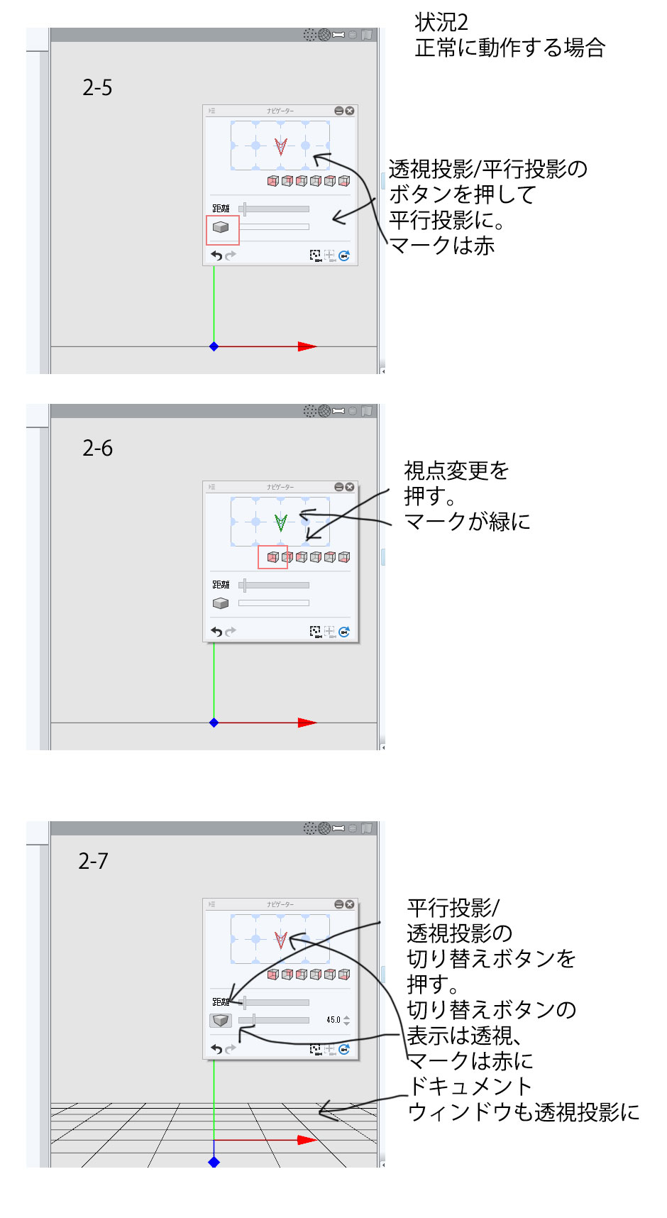 セットアップモード:平行投影/透視投影切り替えボタンが視点変更ボタン併用で動作しない |