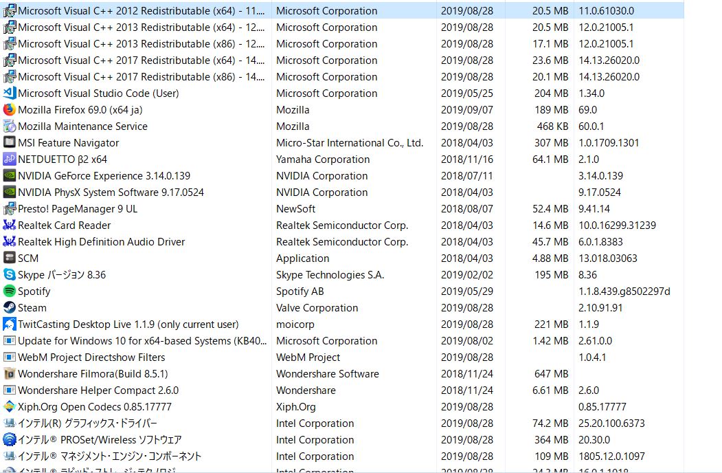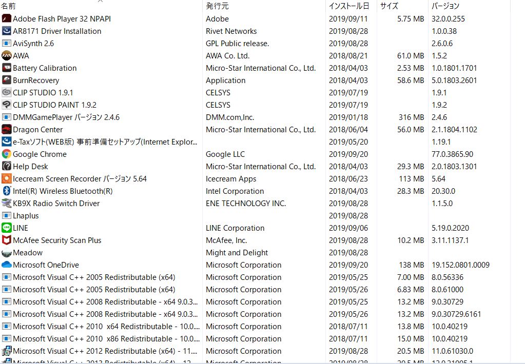 ・[プログラムと機能]の画面を拝見すると以下複数のセキュリティ