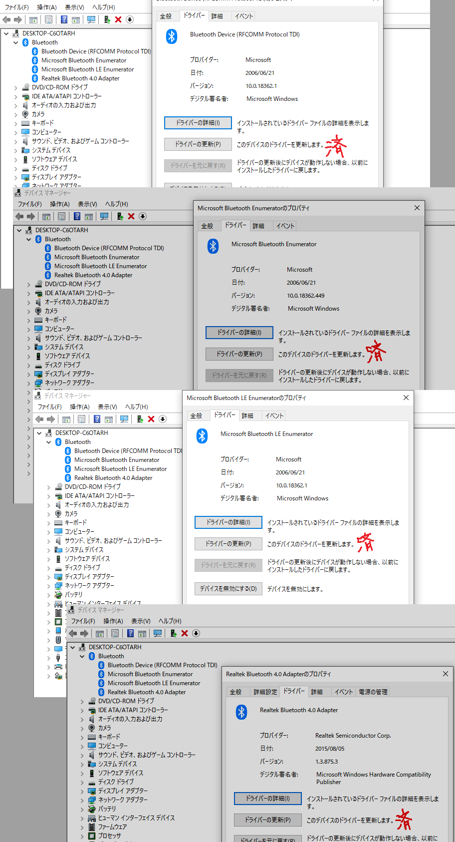 おそらく[済]と記載された画面からドライバの更新をお試しになられていると
