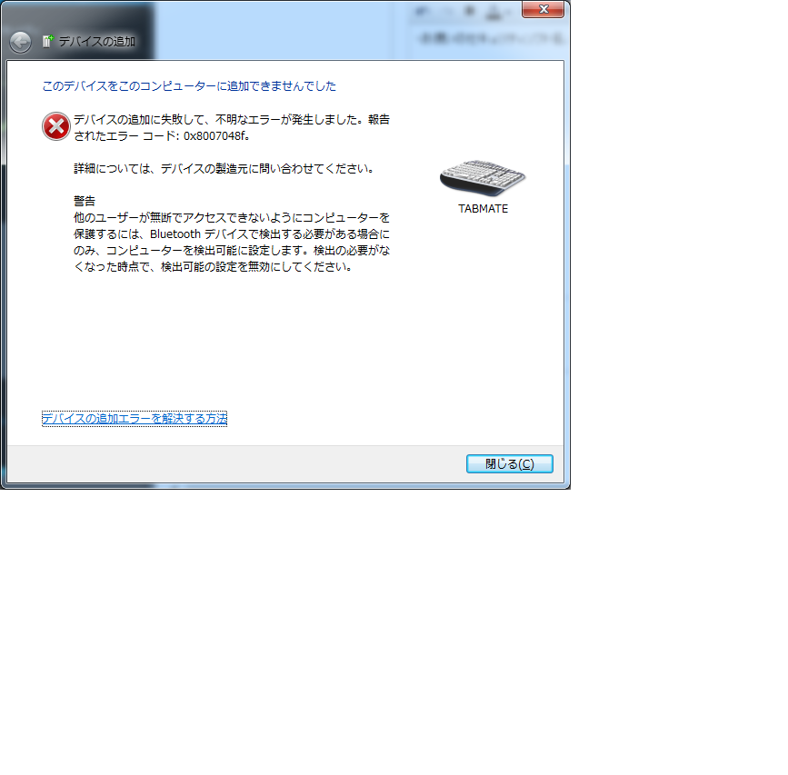 その場合、お手数ですが、[TABMATE]上で右クリック→[デバイスの削除]を