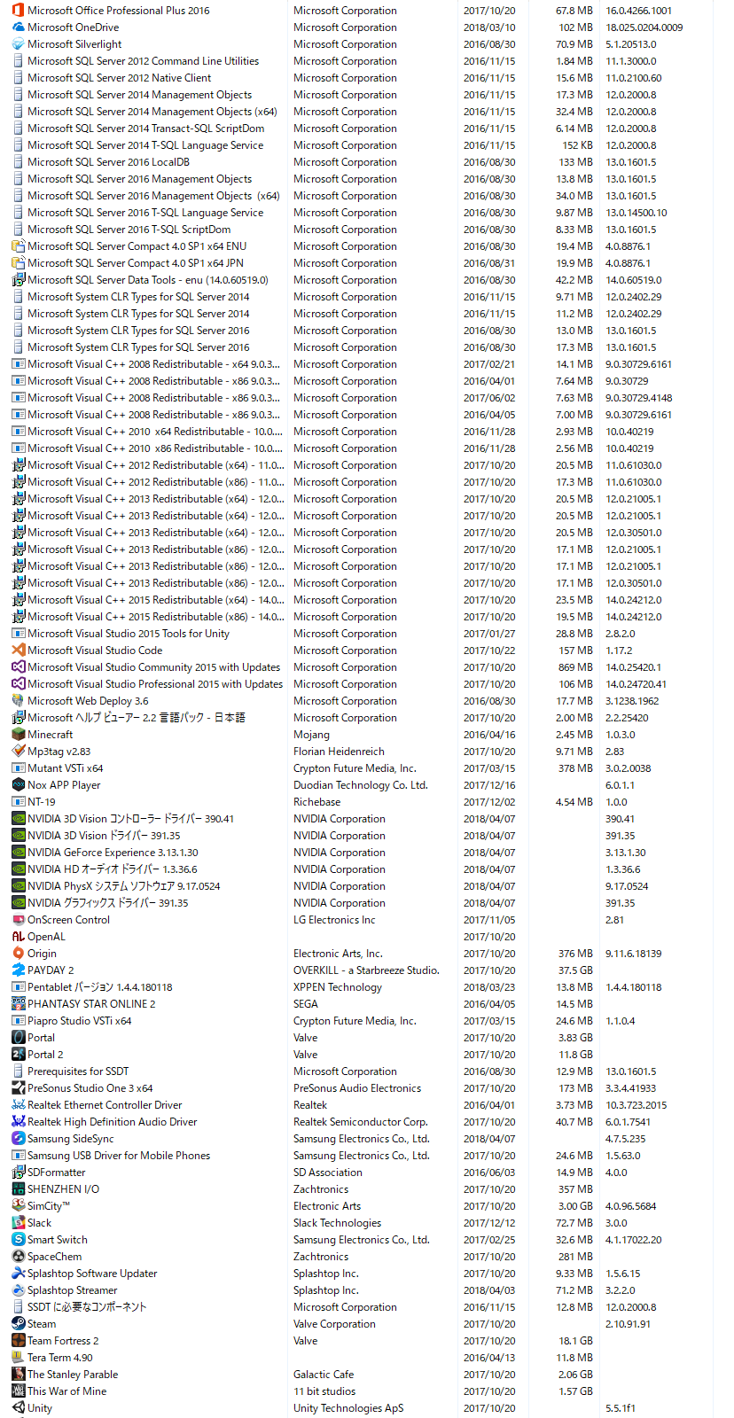 またインストールされているソフトは以下になります。
