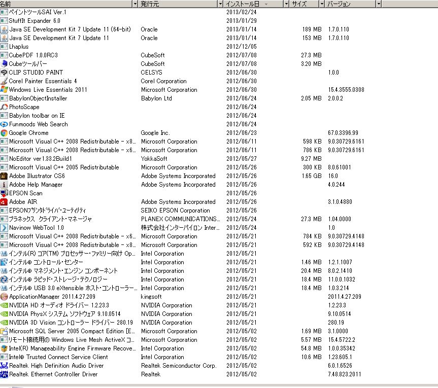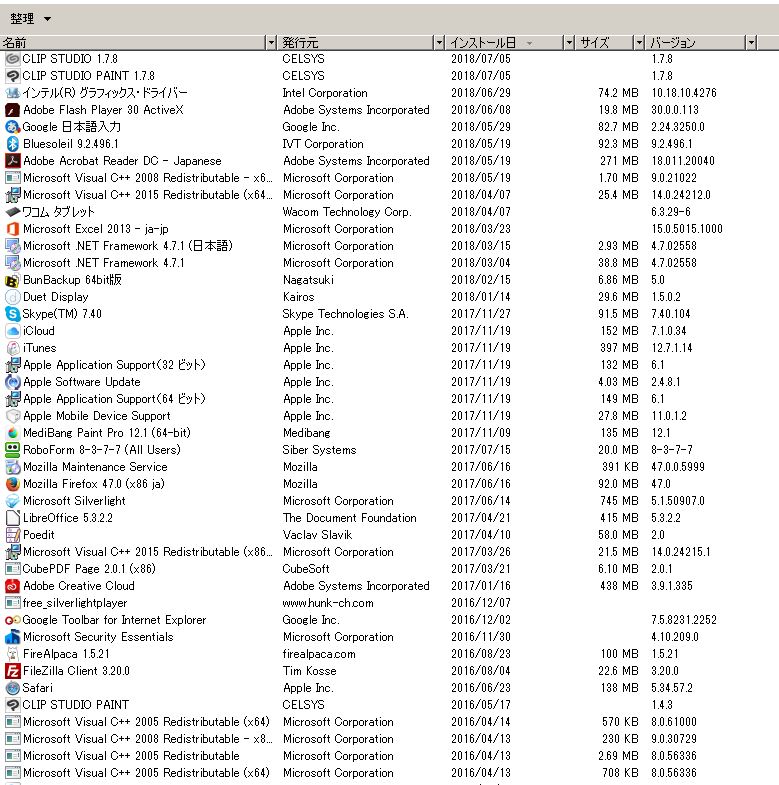 (プログラムと機能)]を選択して表示される画面のすべての項目が