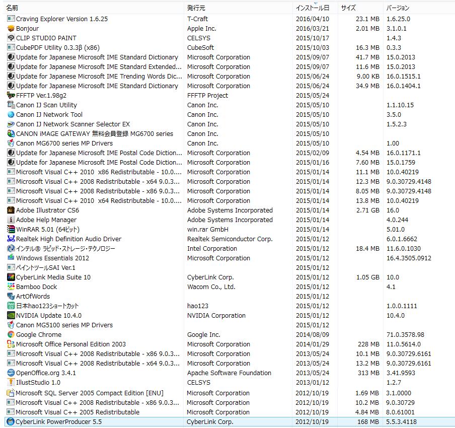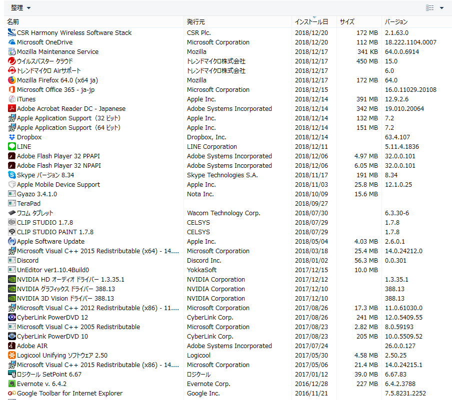 ・[コントロールパネル]→[プログラムと機能]を選択いただき、表示される一覧の