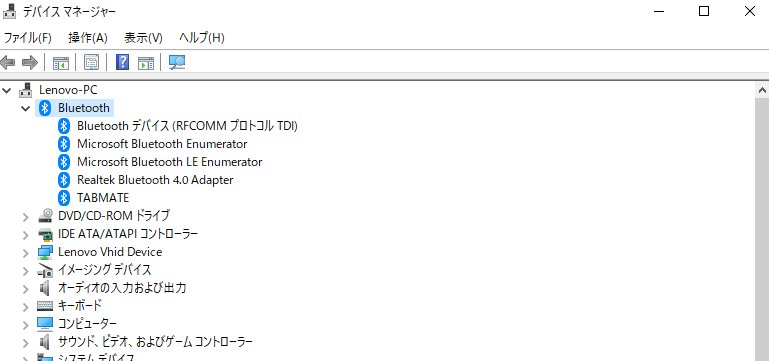 項目をダブルクリックして[Bluetooth]の項目を表示した状態の画面