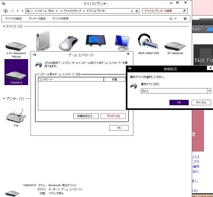 タブメイトのプロパティに「電源の管理」がなかったりと、正常にインストールできていないのでしょうか? ゲームコントローラーのところにも何もなくて…行き詰っています
