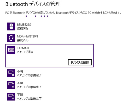 その場合、[Bluetooth デバイスの管理]に表示される[TABMATE]は[接続済み]にならず、