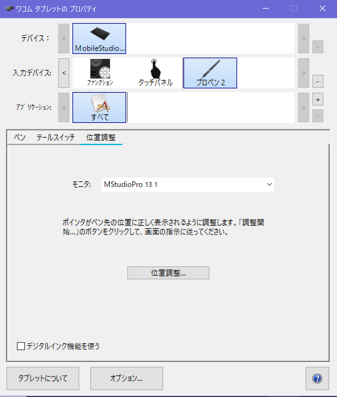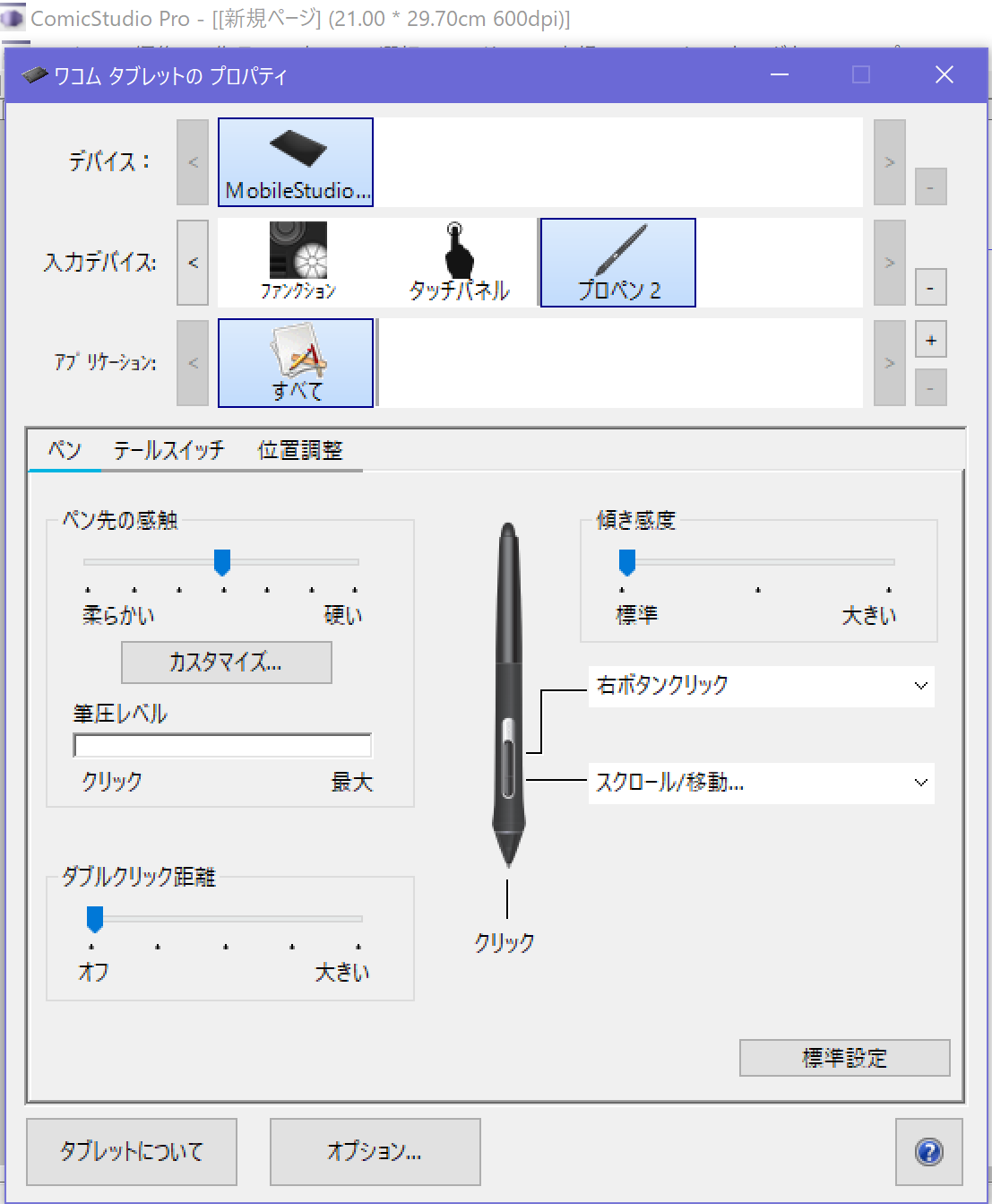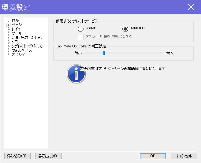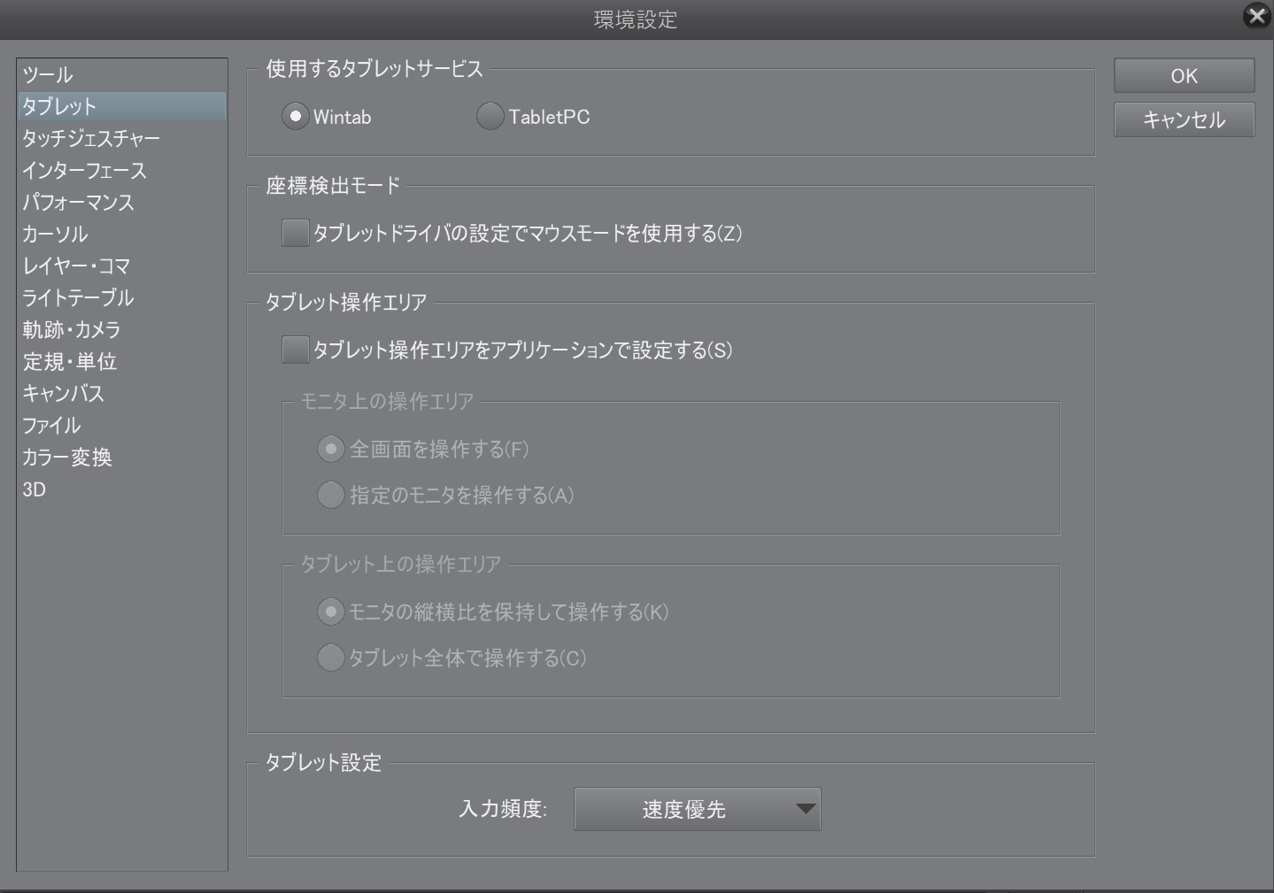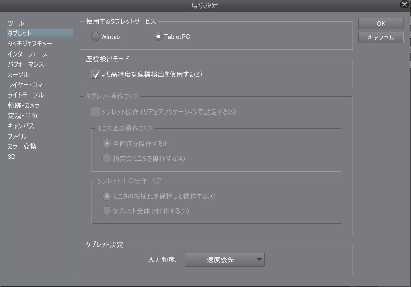 [使用するタブレットサービス]が[TabletPC]から[Wintab]に変更