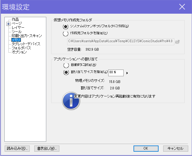 ・掲載頂きました[環境設定]の[メモリ]にある[アプリケーションへの