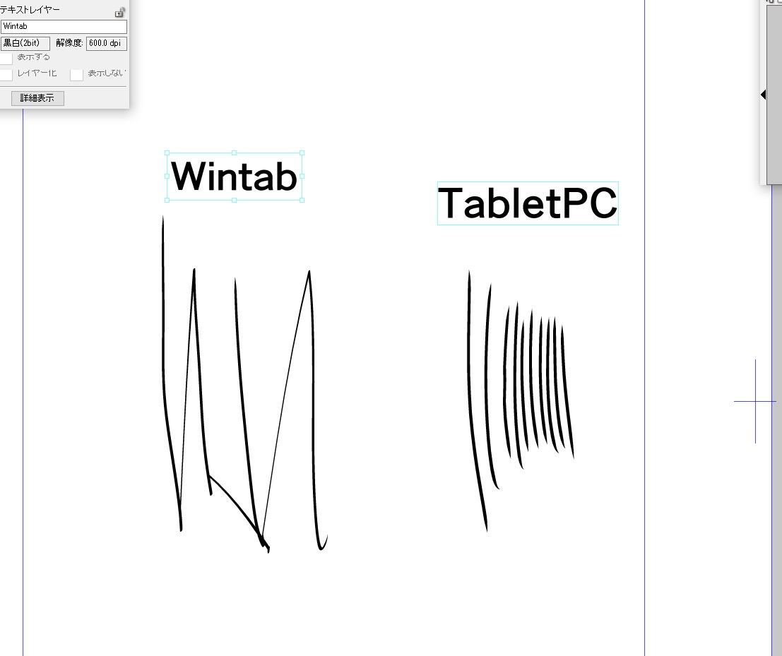 →タブレットサービスをWintabに変更すると、線が繋がり、かなり遅れて描写されます。