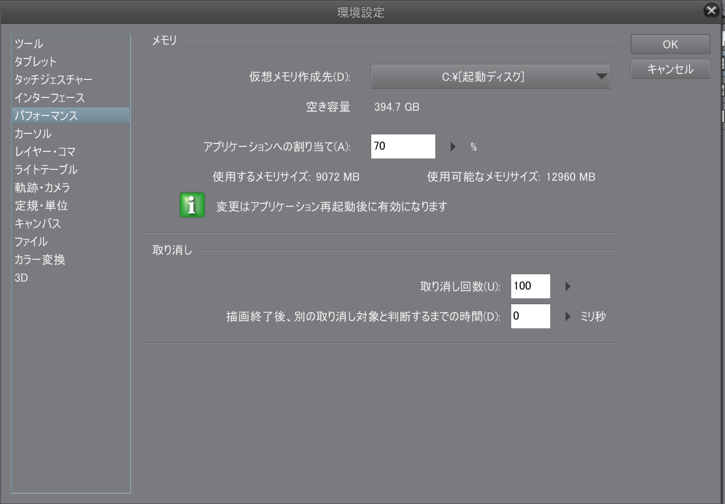 以下の点について設定の上、ComicStudioを終了し、パソコンを
