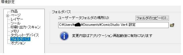 素材なども移行したかったので、旧PCのC:\ユーザー\●●●(名前)\ドキュメント\ComicStudio Ver4 設定からComicStudio Ver4 設定フォルダを外付けHDDに保存、新PCでコミスタを終了した状況で旧PCと同じ場所(C:\ユーザー\●●●(名前)\ドキュメント\ComicStudio Ver4 設定)に上書きではなく、もともとあったComicStudio Ver4 設定フォルダをゴミ箱に入れてから、HDDからコピーして入れました。