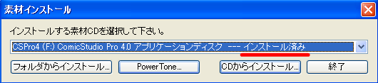 お手数ですが、他の素材ディスクと同様の手順で素材インストールを