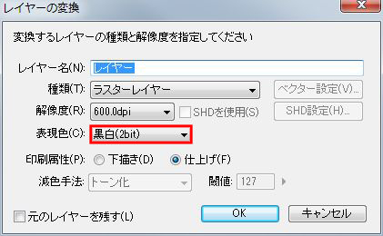 書き出し時に[モノクロ2階調]でかつレイヤー保持のPSDに変換する際に、