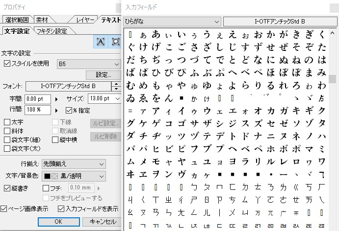 [ひらがな]、[I-OTFアンチックStd B]を選択いただき、下記の