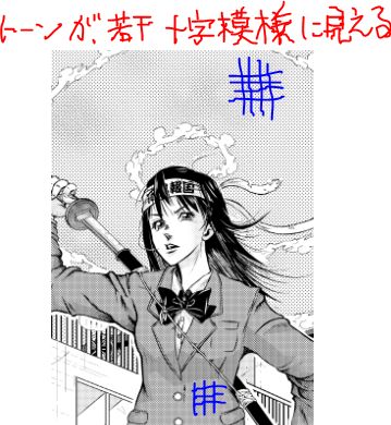 ③すると、書き出された原稿が以下のようになってしまいます。 トーンもガタガタですし、線画もグニャグニャになっております。