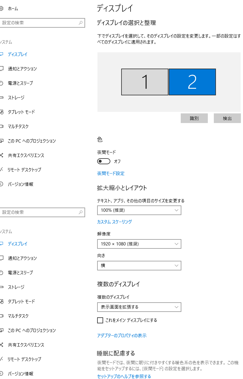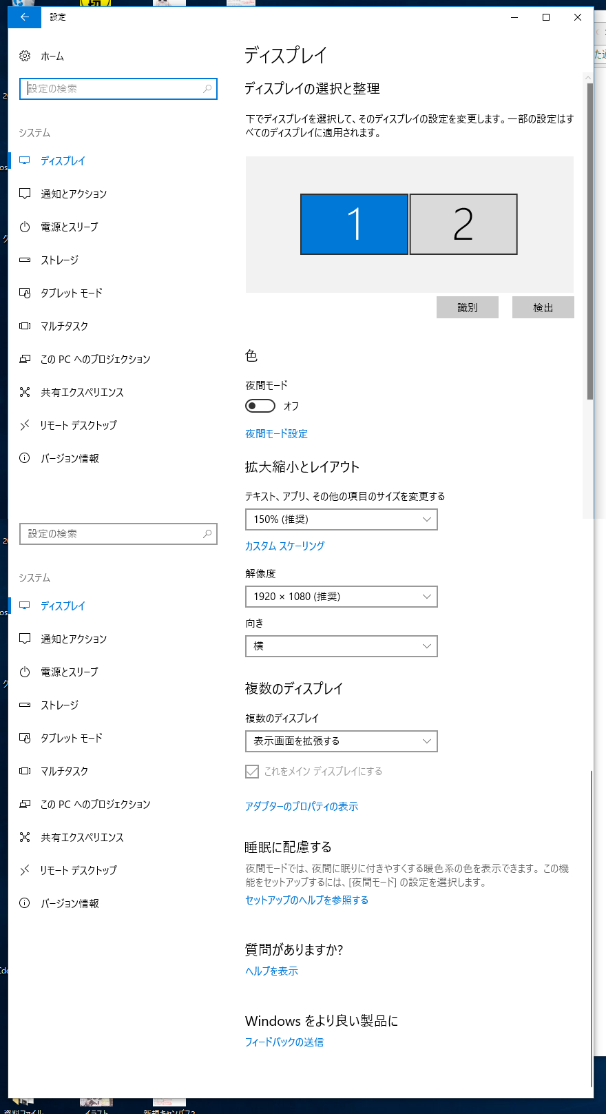 ・[Windowsスタート]→[設定]→[システム]を選択し、表示される画面の