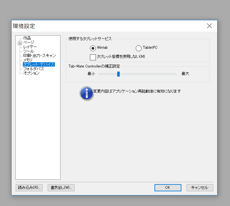 ・ComicStudioを起動し、[ファイル]メニュー→[環境設定]を選択して、