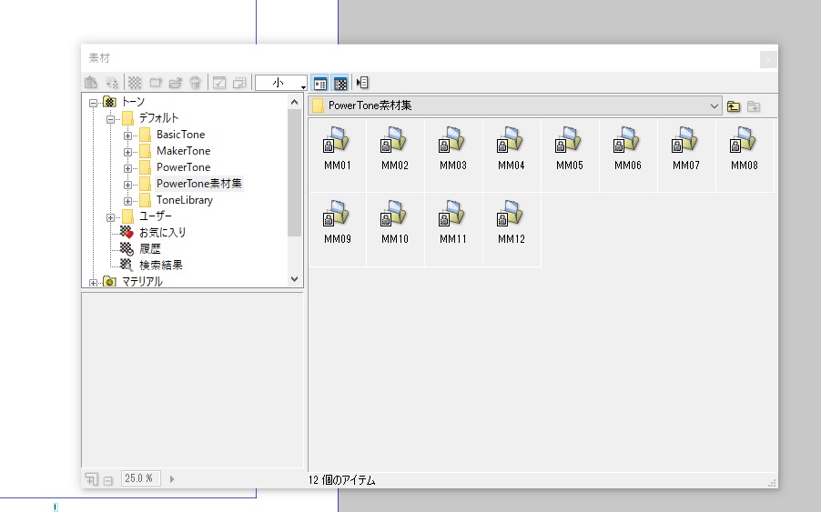 パレットのツリー表示部分で[トーン]→[デフォルト]に