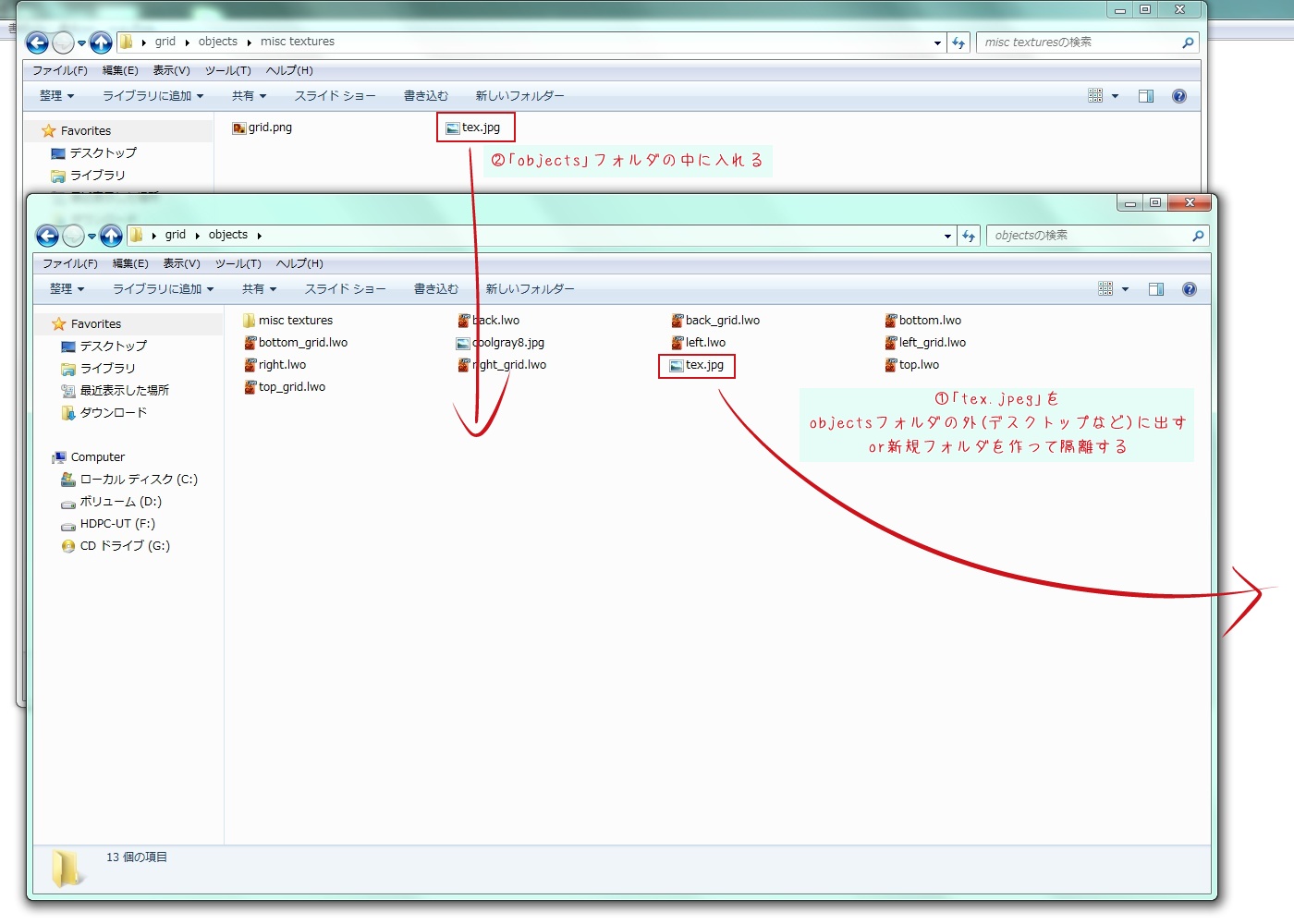 こちらが必要な場合は「objects」フォルダ内の「tex.jpeg」を