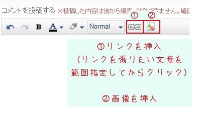 ちなみにリンクを張るのも画像を挿入するのもコメント記入欄上部のコマンドバーから行うことが可能です。