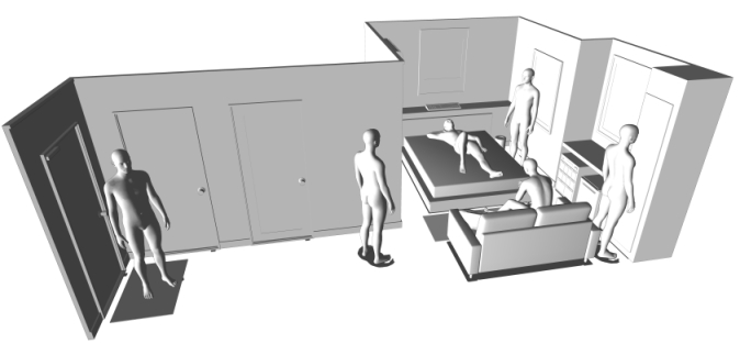 室内に配置したドアは可動設定で開閉させることができるようにしました。