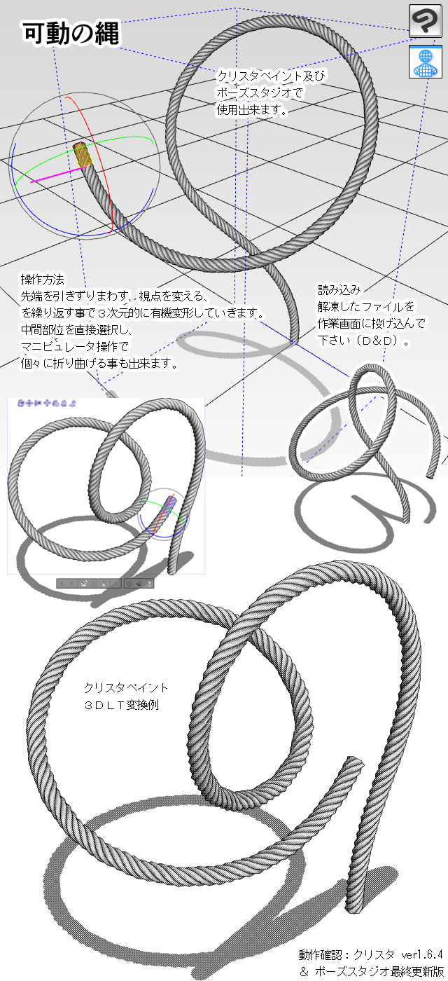 pose studioで可動できる3Dの縄 又は紐が欲しいです。clip studioで動くものはありますが、poseのほうで動かしたいので 誰かお願いします。 形状自体は自分でも作れるのですが、ボーン設定がうまくいかずfbxファイルで作ってもposeは認識してくれません。 長さはそんなに長くなくていいので、多少のものをくくりつけるくらいの縄か紐をお願いします。 |