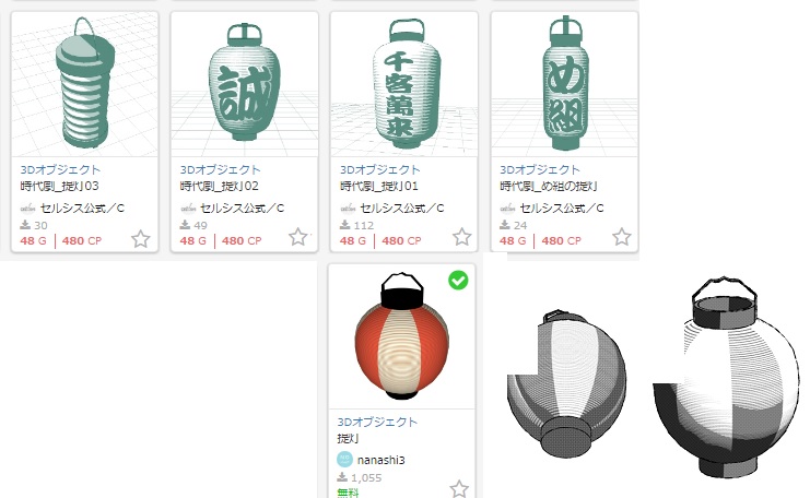 現在、セルシスから出ているものはすべて縦長の、お役人が持つようなタイプしか出ておらず、 唯一それっぽいものも、LT変換時、よこ線が微細になってしまうため、 ![]() こちらの画像のような、やや丸めで線数の少ない、 ベーシックなちょうちんの3Dをお願いしたいのですが、できますでしょうか。 ![]() |