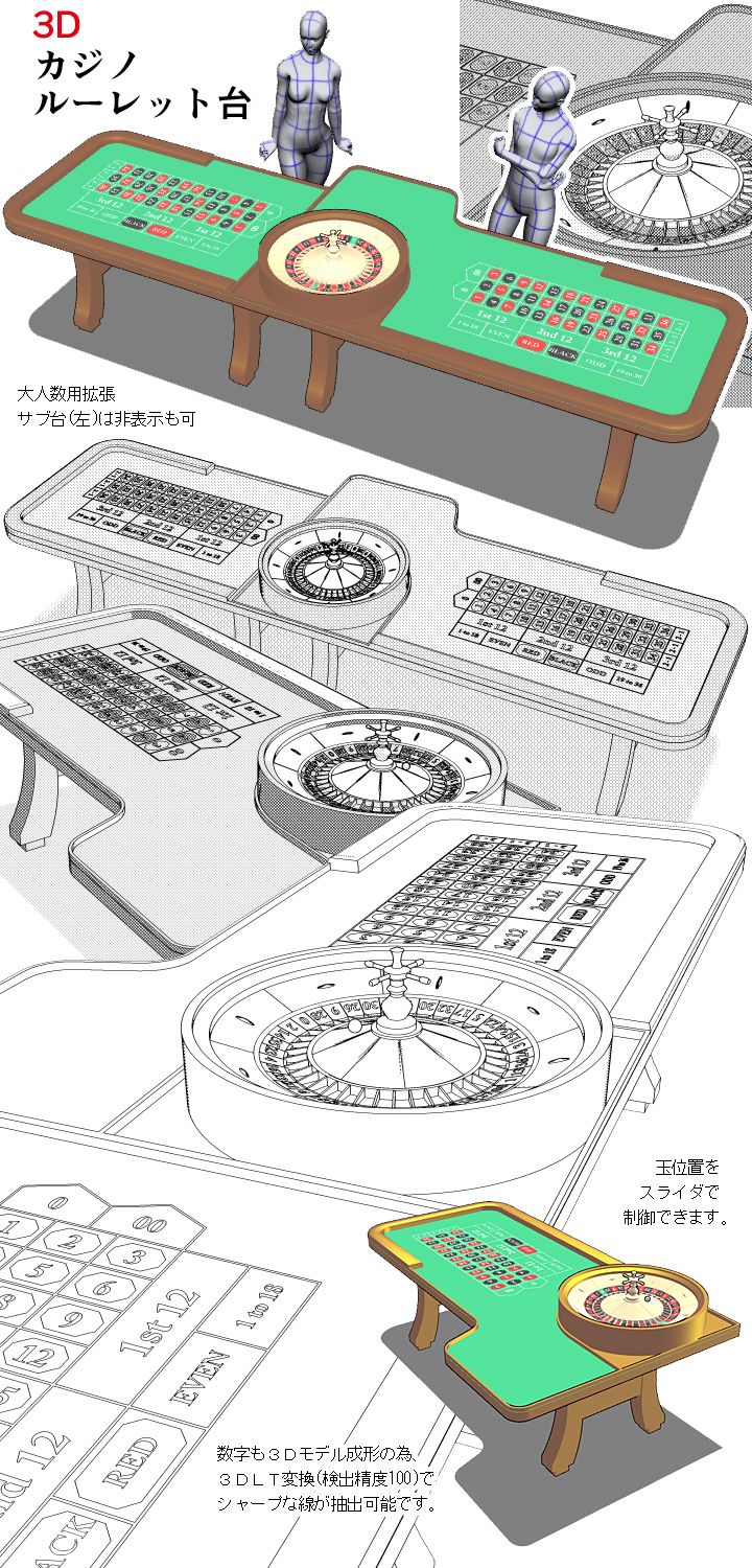 いつもありがとうございます。 カジノの3D素材が欲しいのですが、全体は難しいと思いますので、特にルーレットのテーブルが欲しいです。 (カジノの入口もあると嬉しいです) 高くても構いませんのでよろしくお願いします。 |