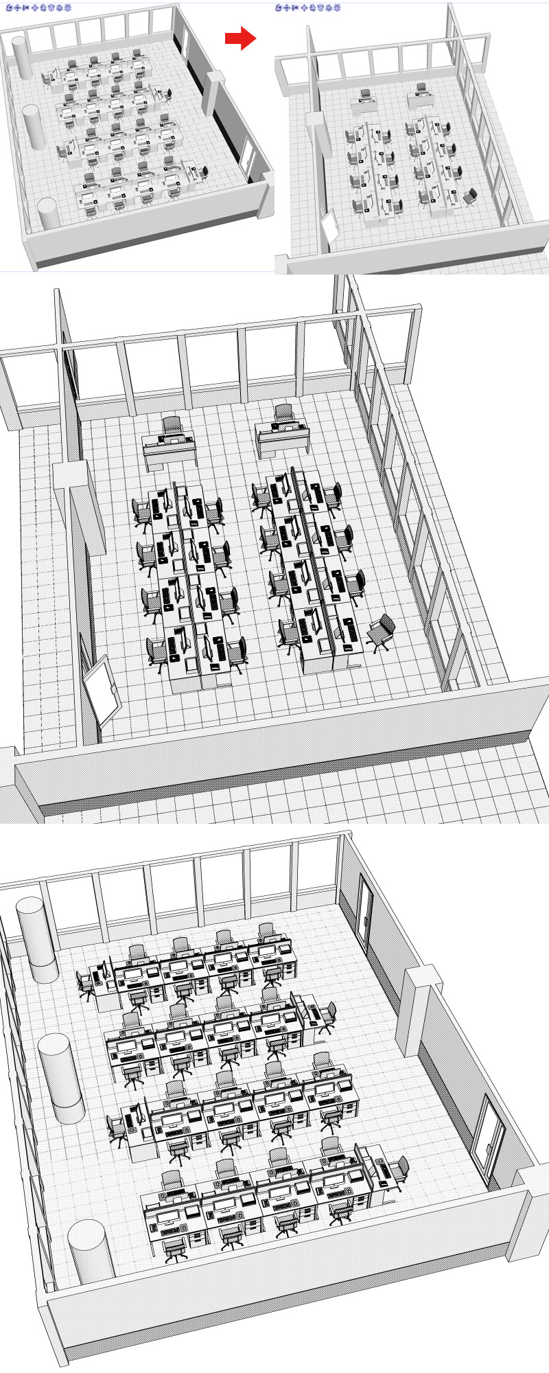 G-BLACK様の作品のオフィス フロア 01の机の並び、まさにこういう状態の部屋が希望だったので、購入の方も考えてみています。