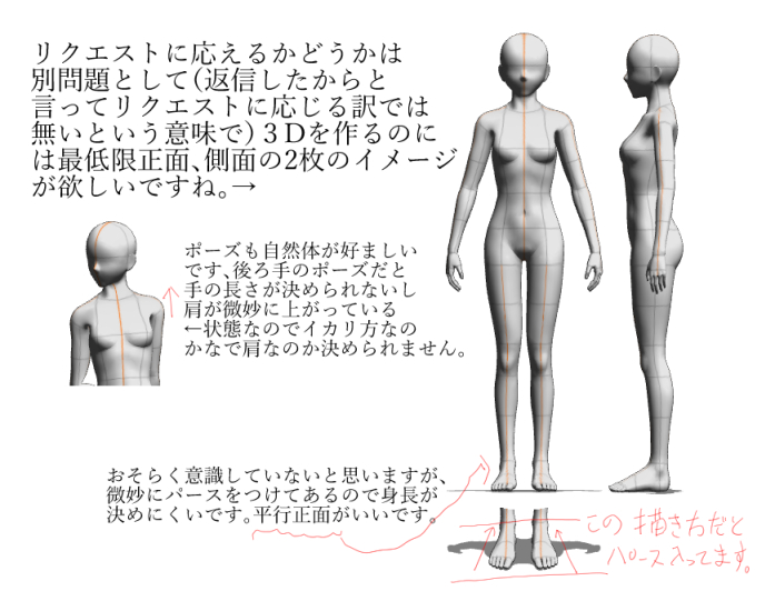 (仮)の3dキャラとても魅力的です!私がクリスタの標準の体系モデルが少し苦手で…。