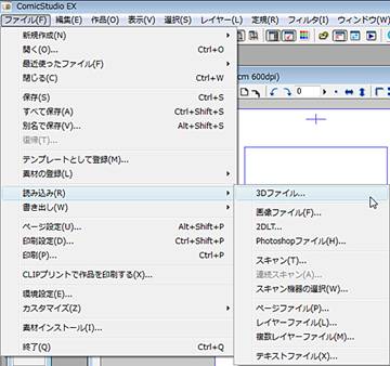 ①新規にページを作成し、[ファイル]→[読み込み]→[3Dファイル]を選択します。