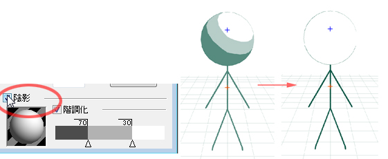 ⑤[3Dワークスペースプロパティ]の[陰影]チェックをはずします。