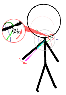 一番親の[棒人形]パーツ以外に[移動](マニピュレータの▼印ドラッグ)を用いるとパーツがバラバラになってしまいます。